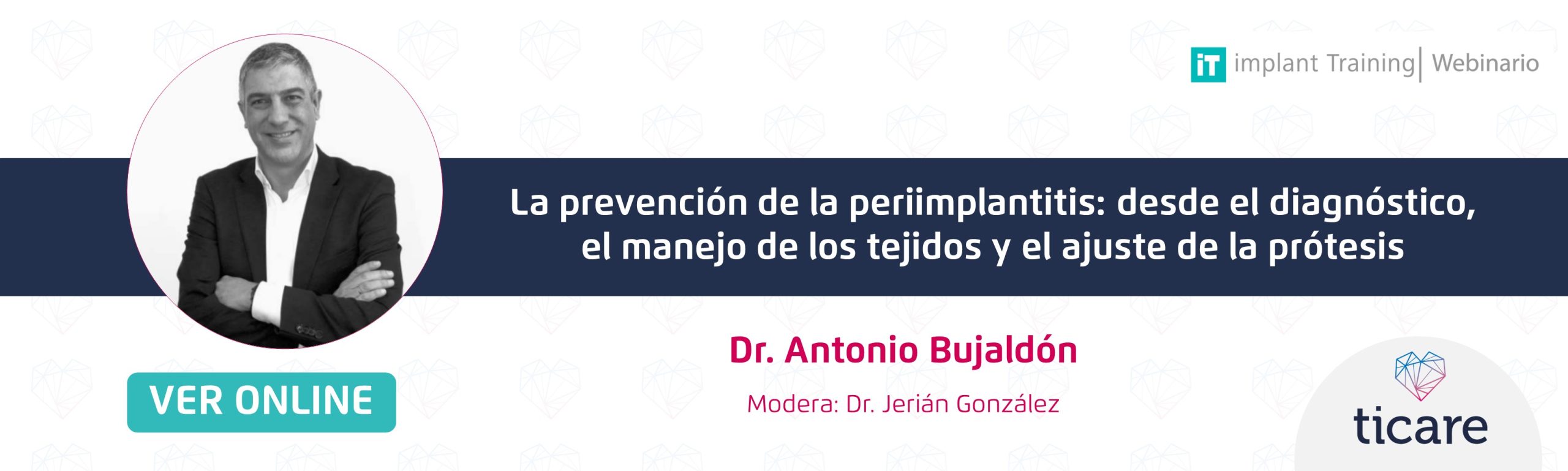 ra asegurar la salud alrededor de los implantes dentales a largo plazo. Ponente: Dr. Antonio Bujaldón Modera: Dr. Jerián González Categoría: Periimplantitis Enlace: https://attendee.gotowebinar.com/register/8311162663198609760?source=Implant+Training Fecha: 12/12/2022