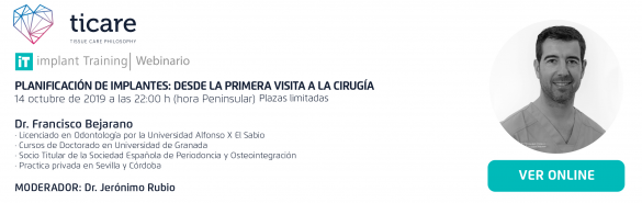 El Dr. Francisco Bejarano planteará en este webinario en qué punto se encuentra actualmente la implantología y hacia donde camina el sector. Explicará la importancia de conocer todas las soluciones que se ofrecen -implantes, aditamentos e instrumental- y en qué casos usar cada una para llevar a cabo una implantología de calidad en la práctica diaria.